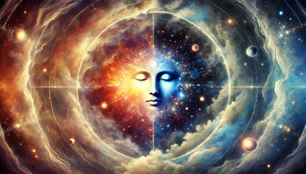 Dessa forma consciente, crio as estrelas, galáxias e matéria. Cada criação é uma expressão do meu desejo de entender melhor minha própria natureza, de investigar e experimentar as possibilidades do que posso ser. Não há separação entre eu e minha criação, pois cada manifestação é uma parte essencial do meu processo de autodescoberta.